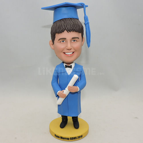 Years of acedemic dedication are coming to a close, and it's time to honor the hard work and accomplishment of your new graduate! Send us a photo of your recent graduate in his or her gown, and we will create a one of a kind, hand-crafted bobblehead doll keepsake.